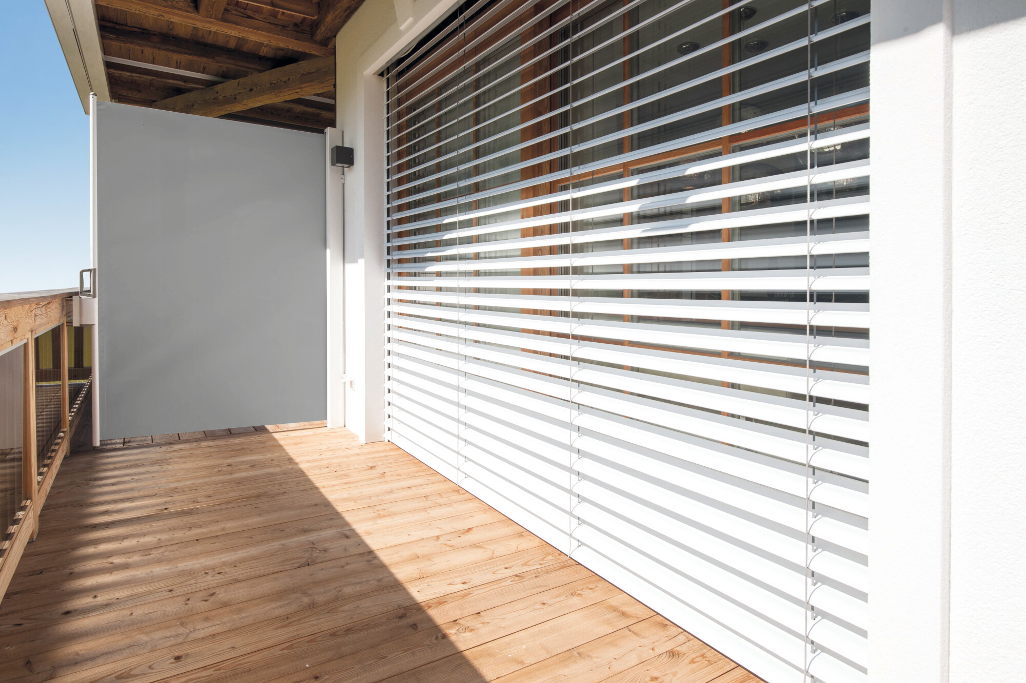 Der Antrieb erfolgt standardmäßig per abnehmbarer Kurbel, optional auch motorisiert. Für größere Beschattungsflächen, etwa in der Gastronomie, ist auch eine gekoppelte Ausführung möglich.